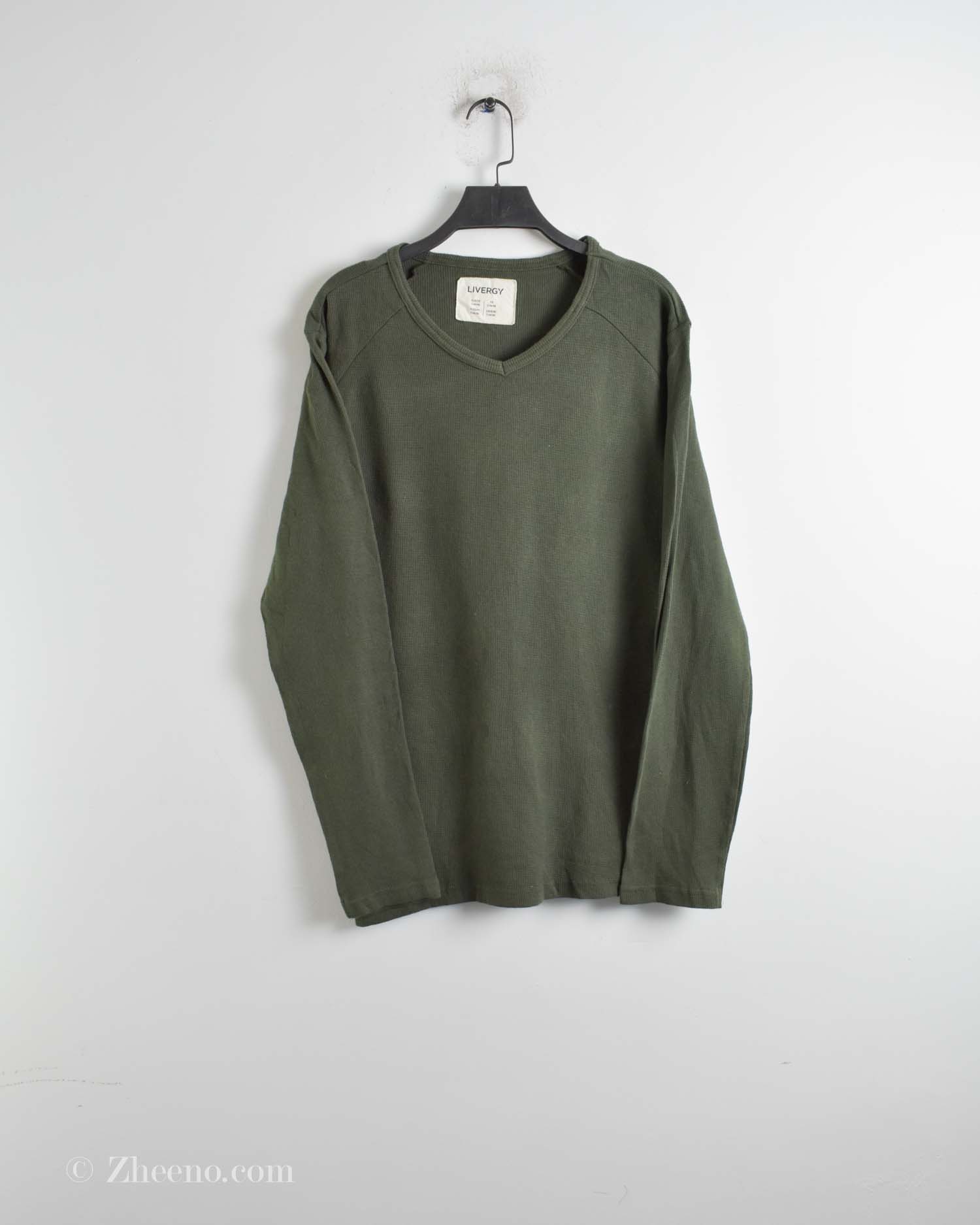 بافت نازک یقه هفت ساده سبز زیتونی