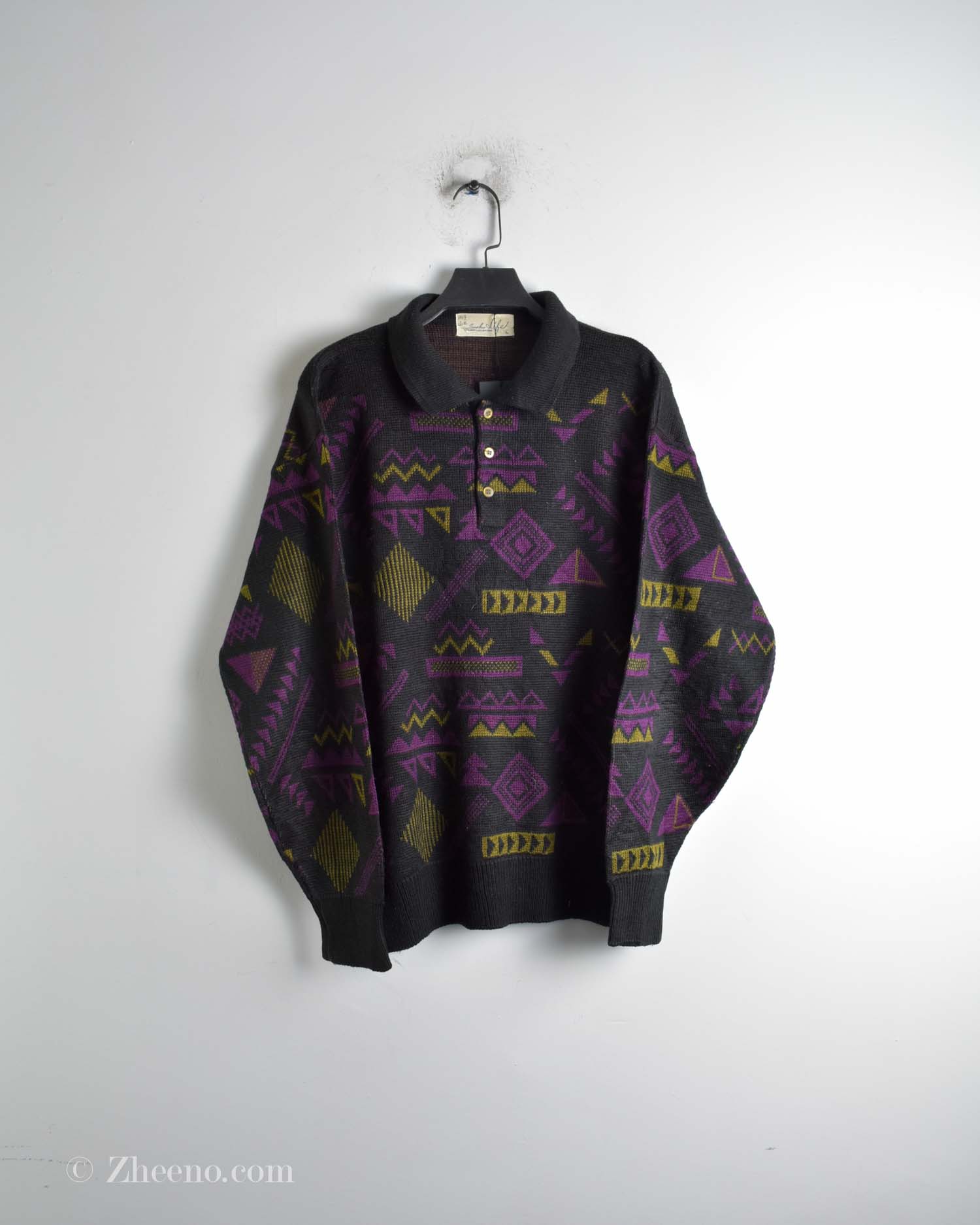 بافت وینتیج بنفش مشکی یقه دار