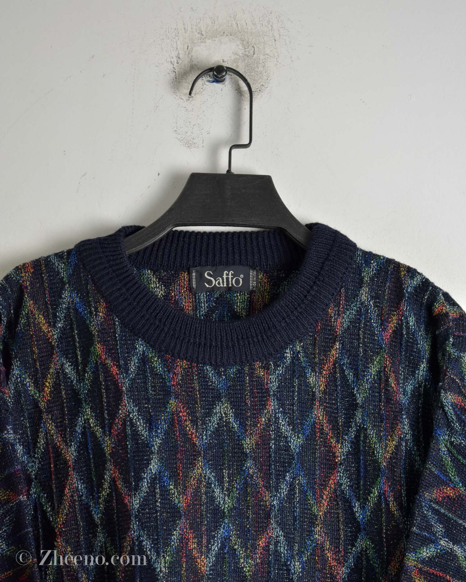 بافت وینتیج سرمه ای طرح لوزی Saffo