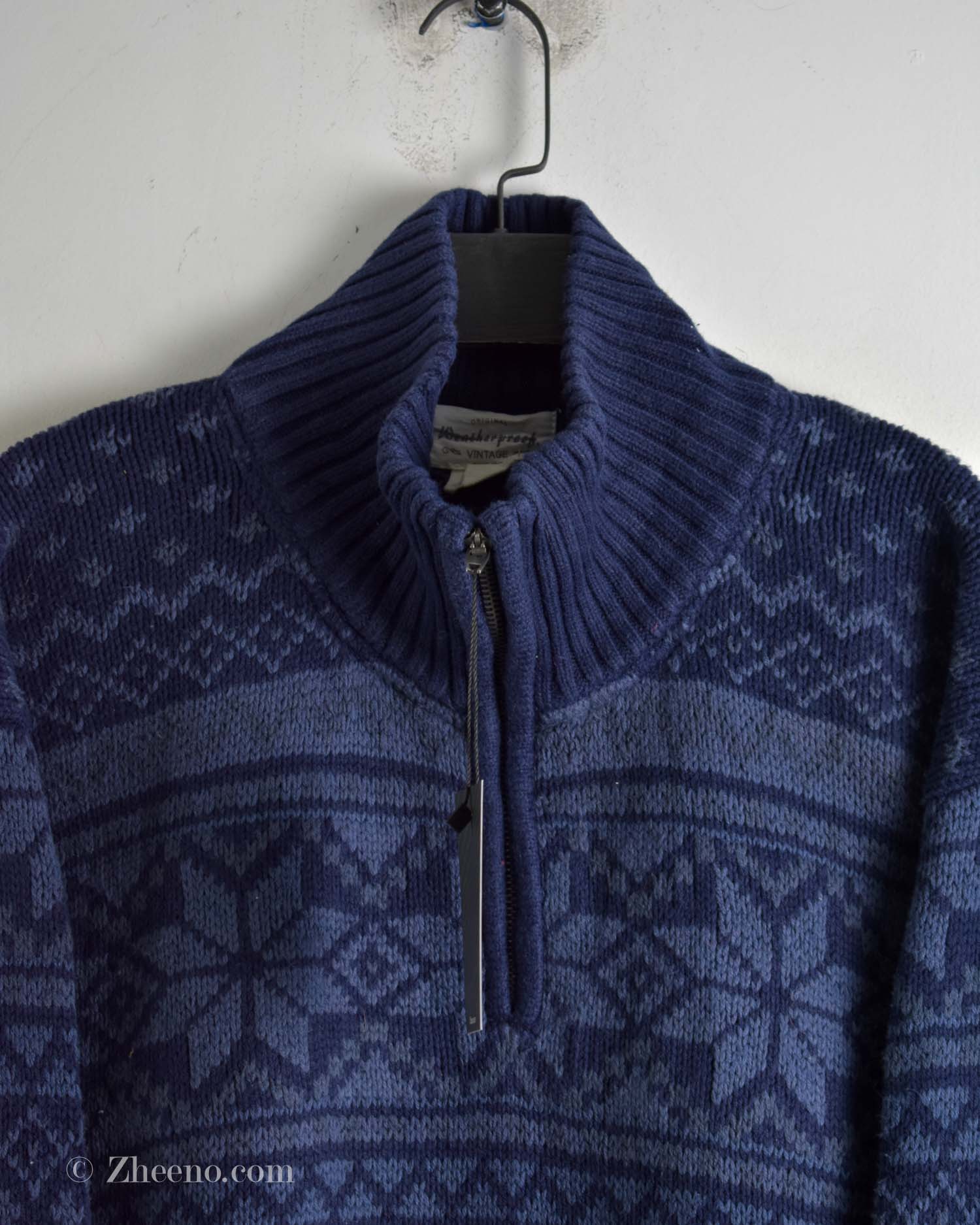 بافت وینتیج سرمه ای یقه دار Weatherproof