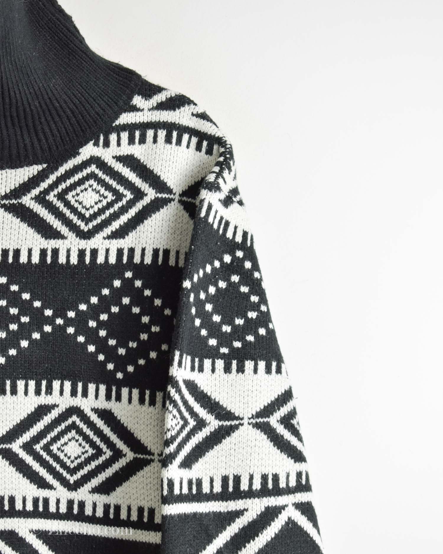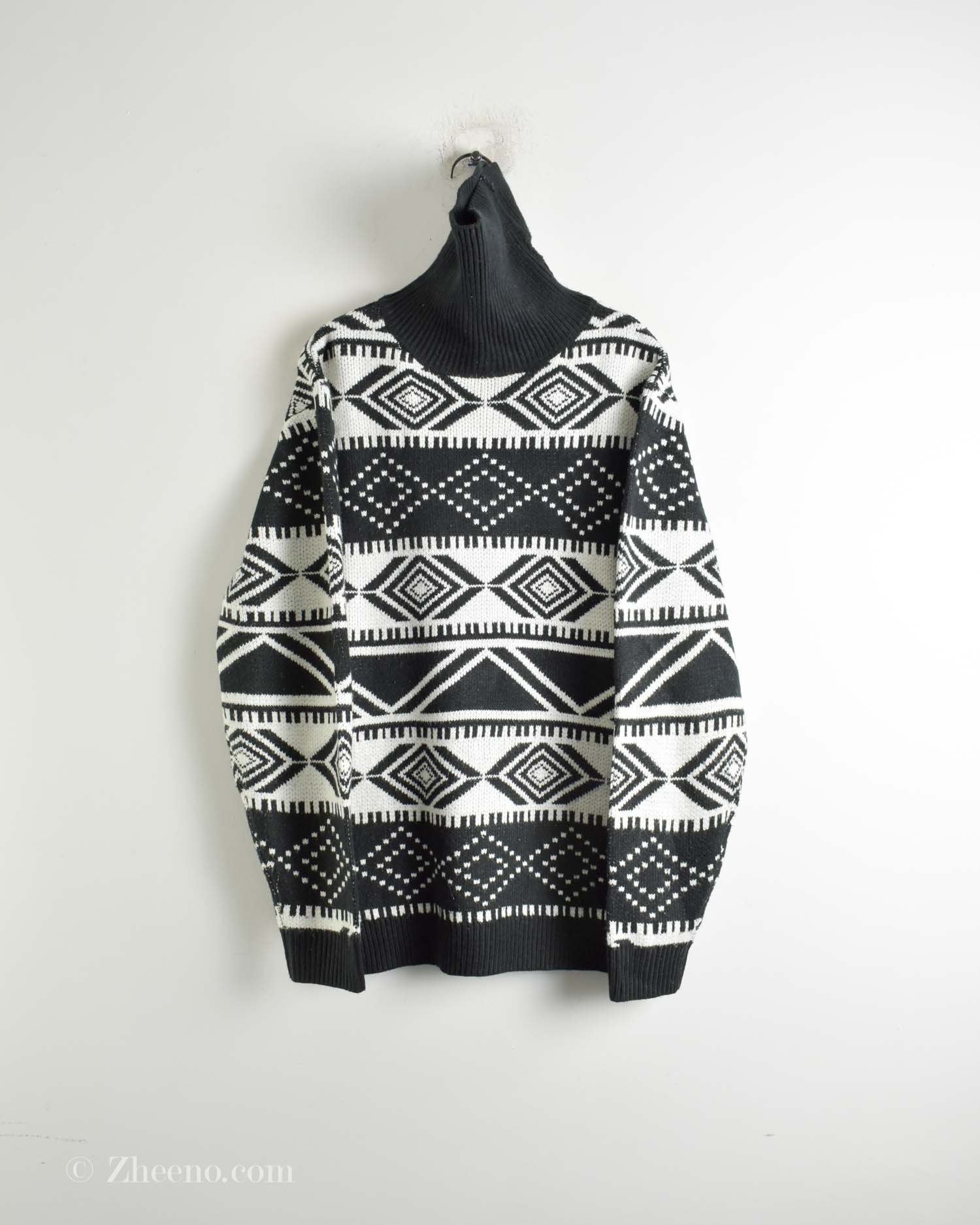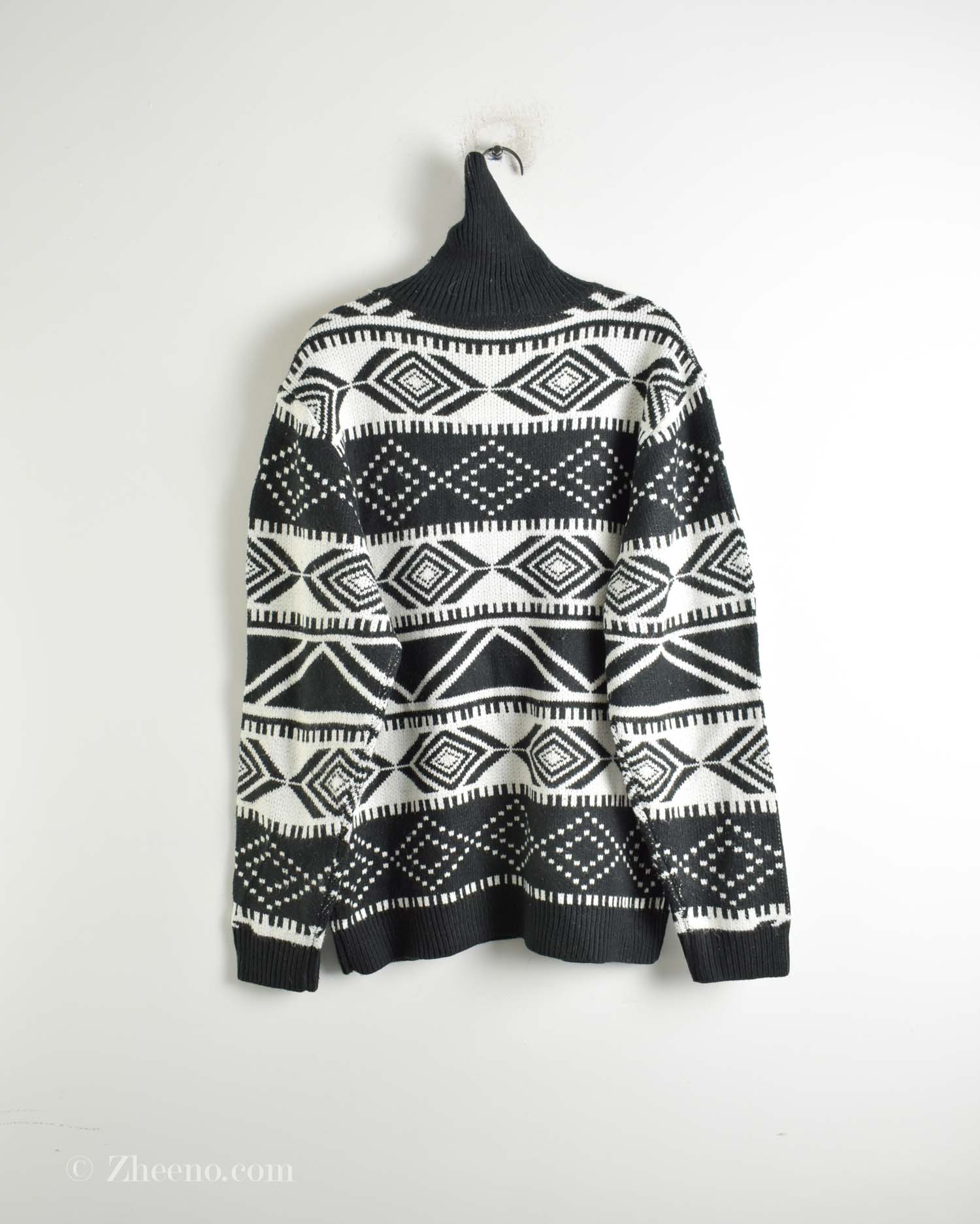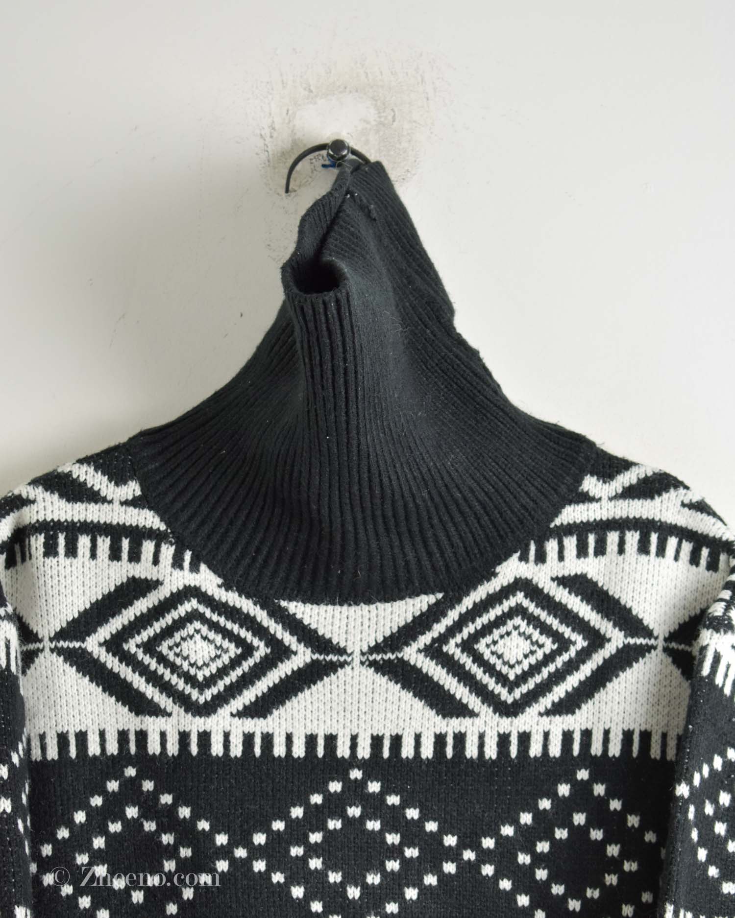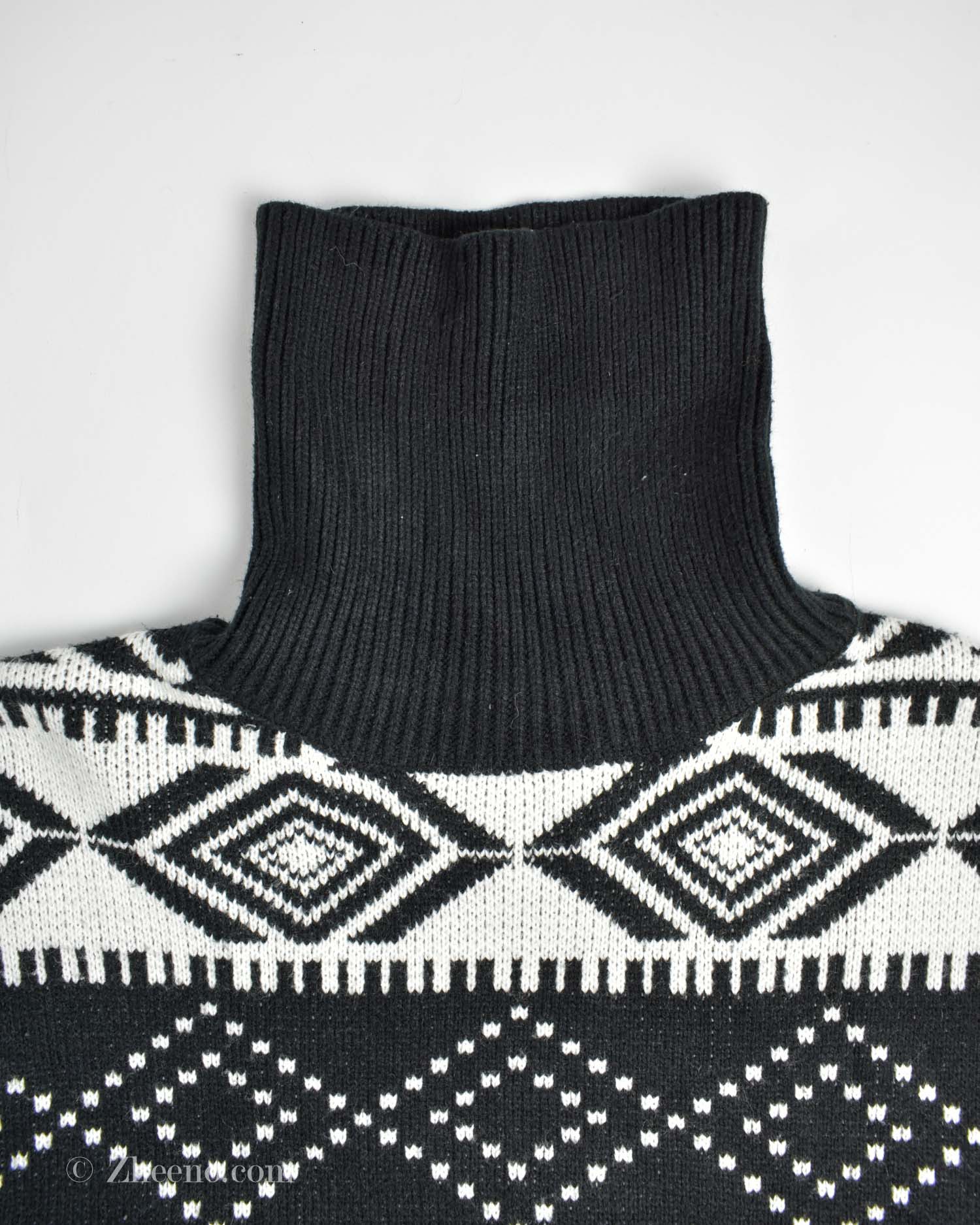 بافت وینتیج یقه اسکی مشکی سفید Paul Jones