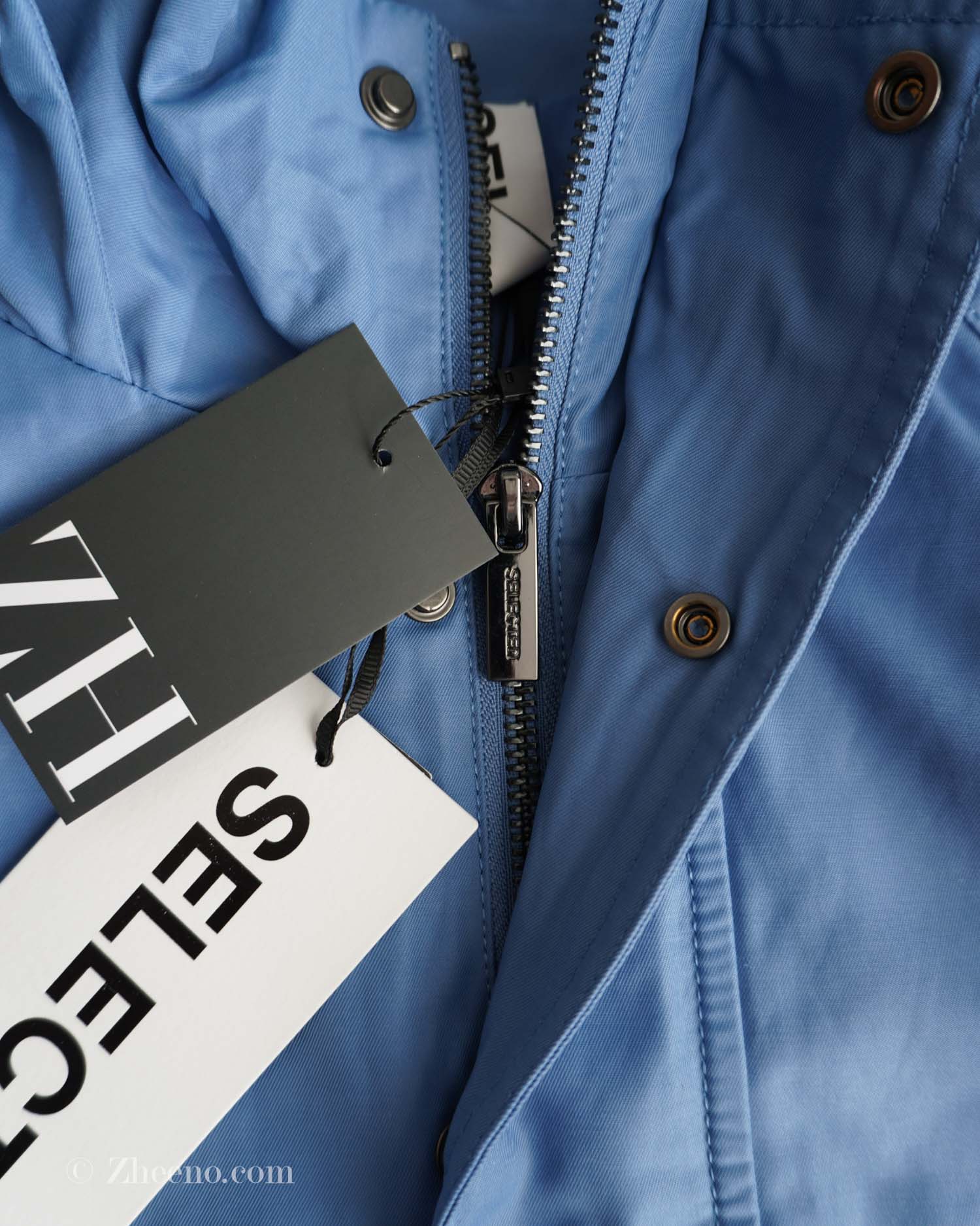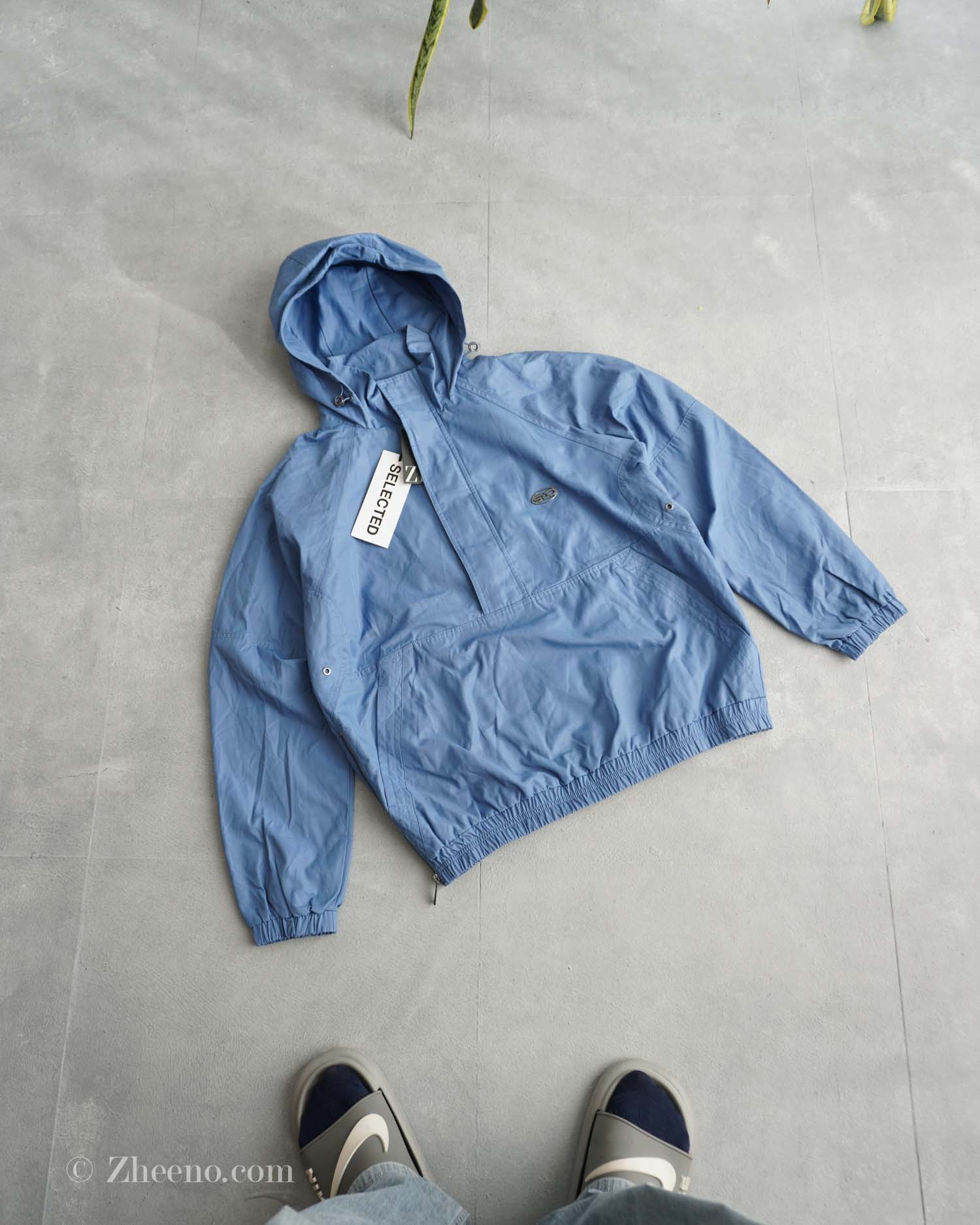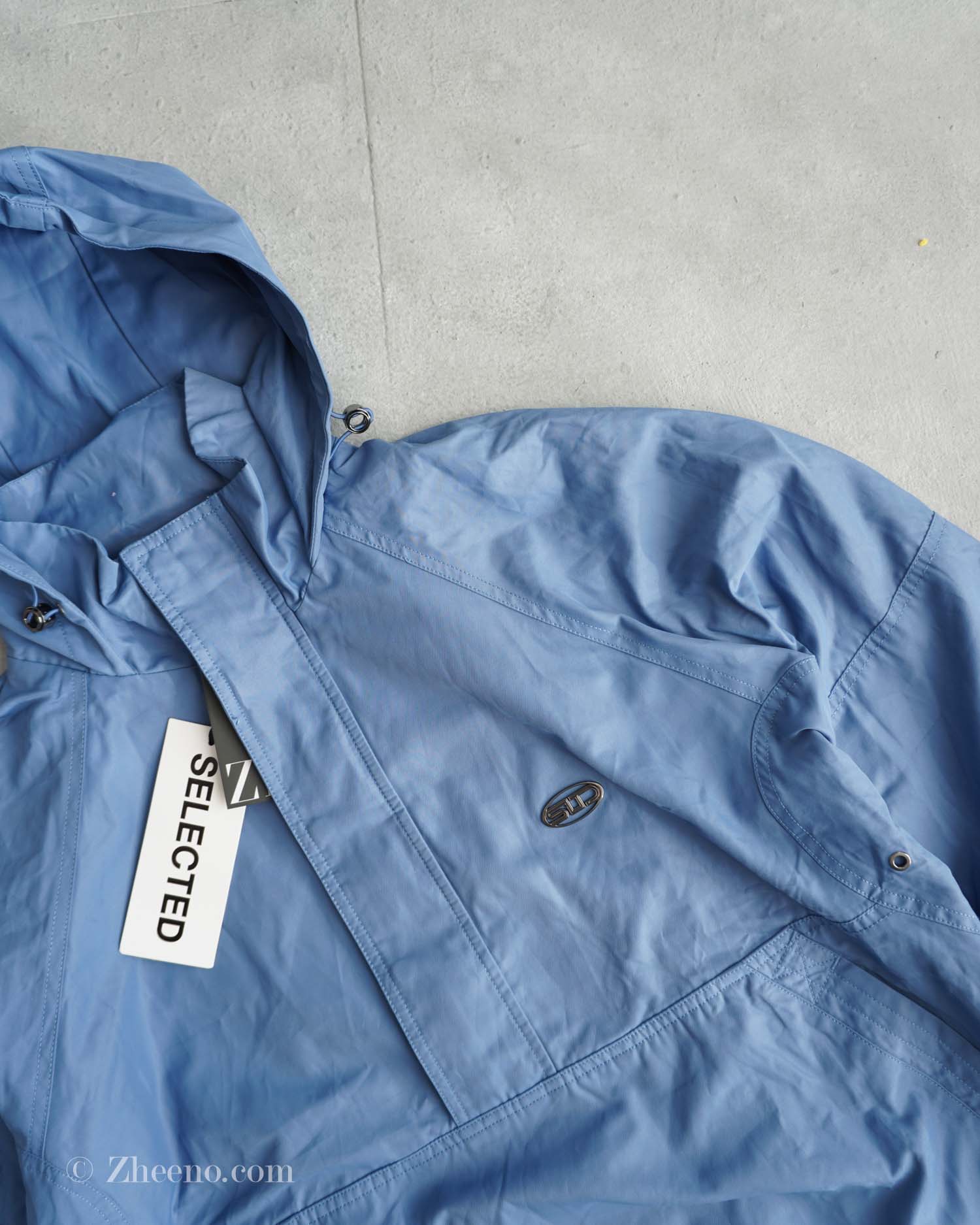 بامبر جکت نیم زیپ کلاه دار آبی Selected