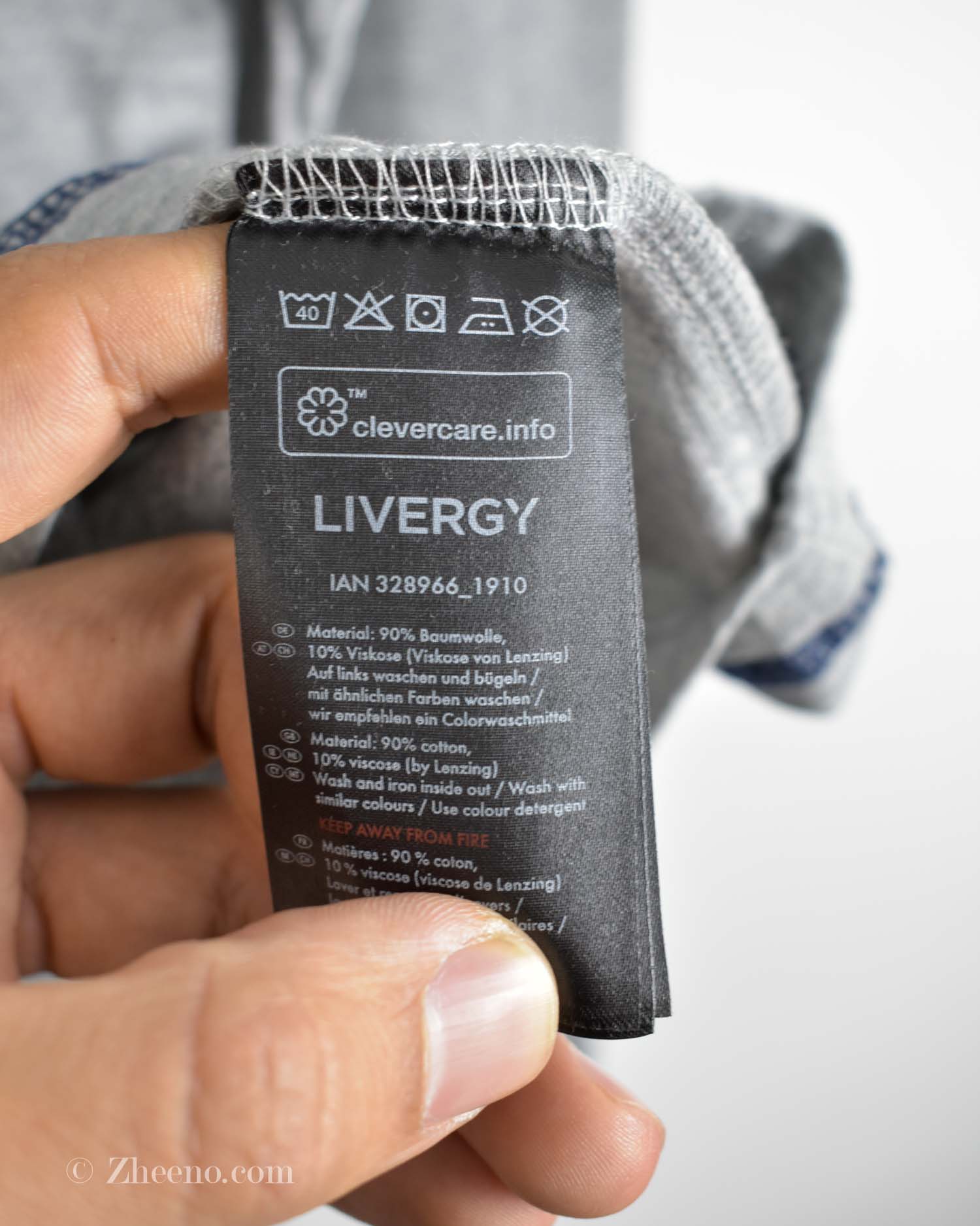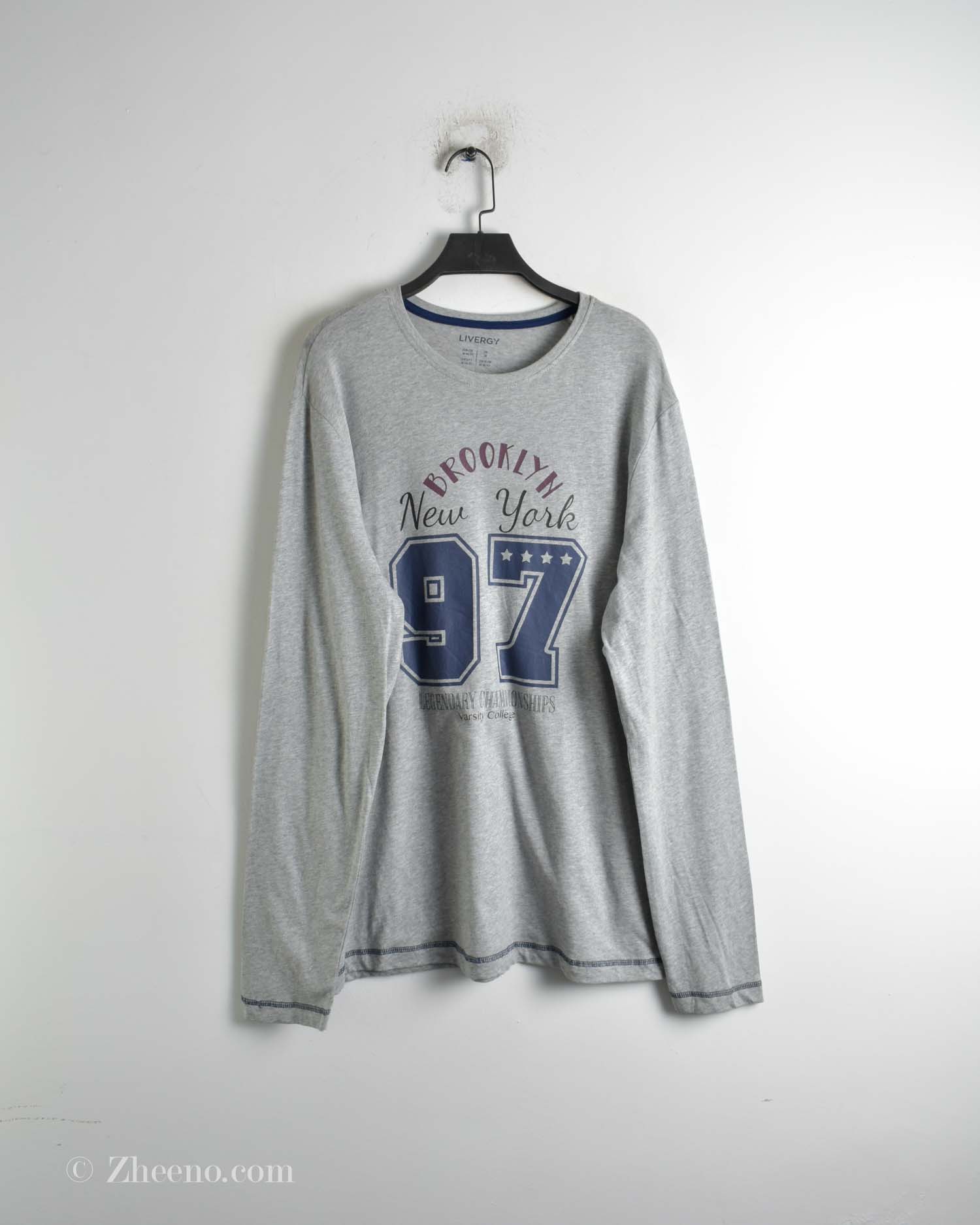 تیشرت آستین بلند یقه گرد طوسی طرح دار Livergy