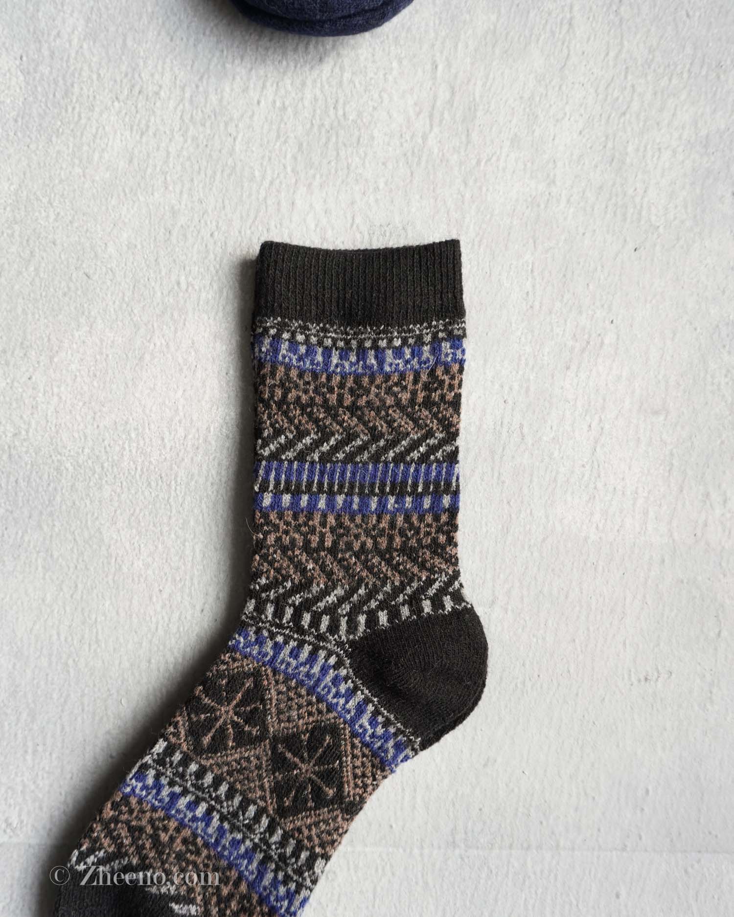 جوراب پشمی مردانه قهوه ای طرح لوزی