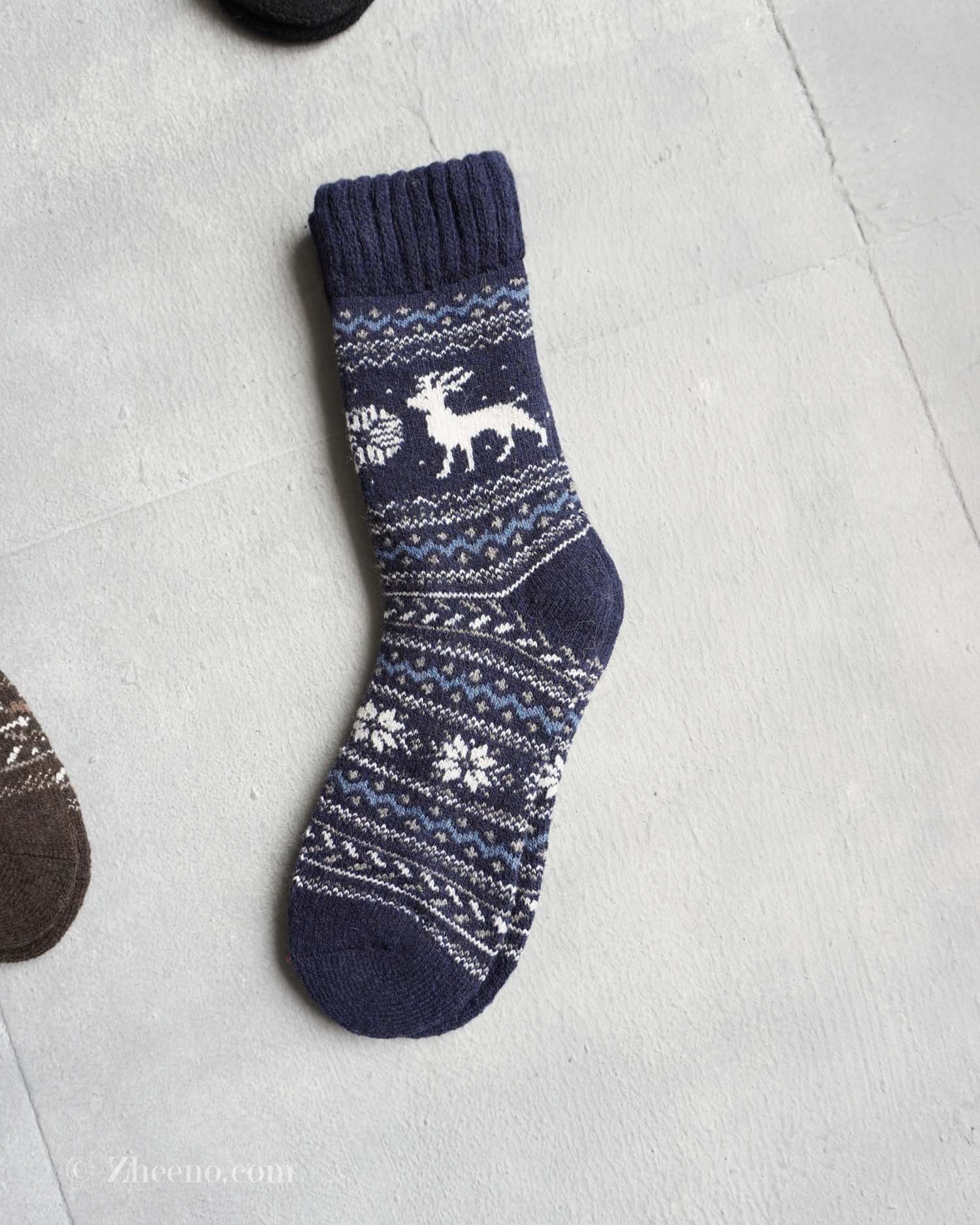 جوراب پشمی وینتیج ضخیم مردانه سرمه ای گوزن 2