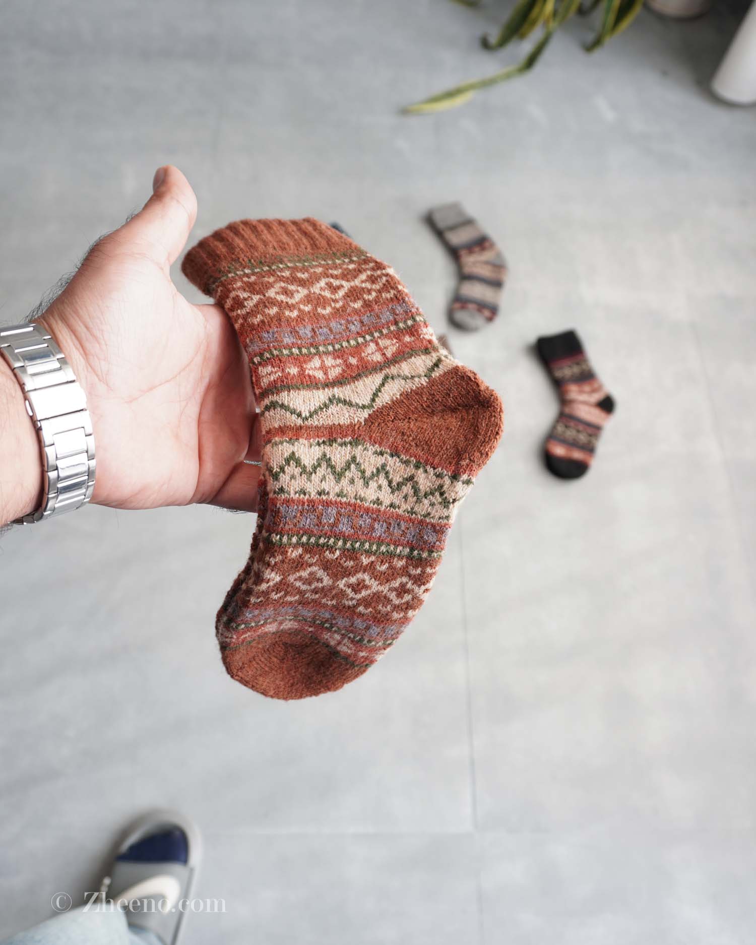 جوراب پشمی مردانه طوسی 2 طرح لوزی