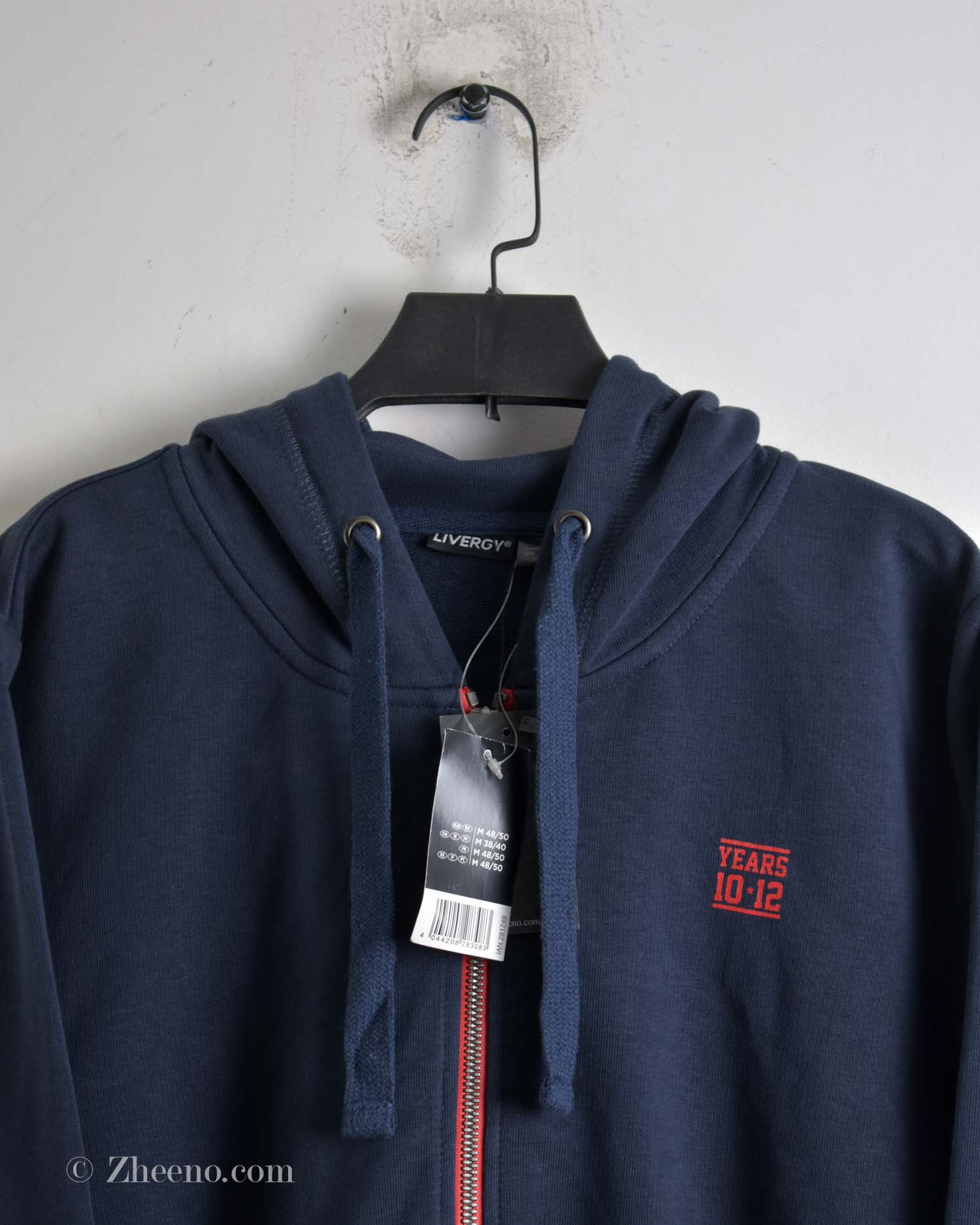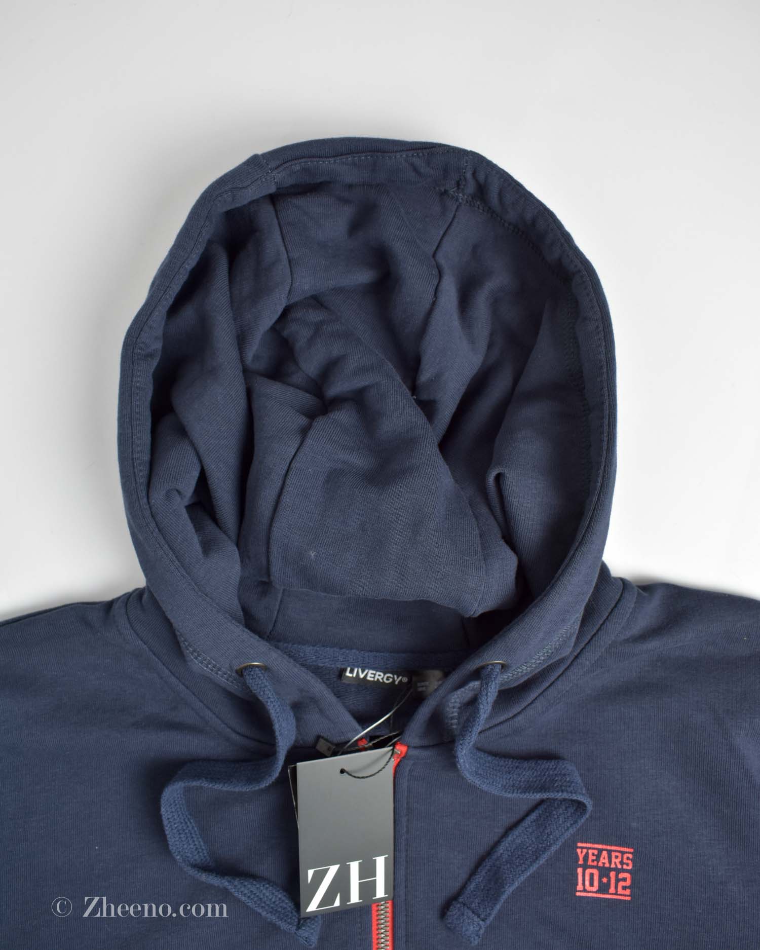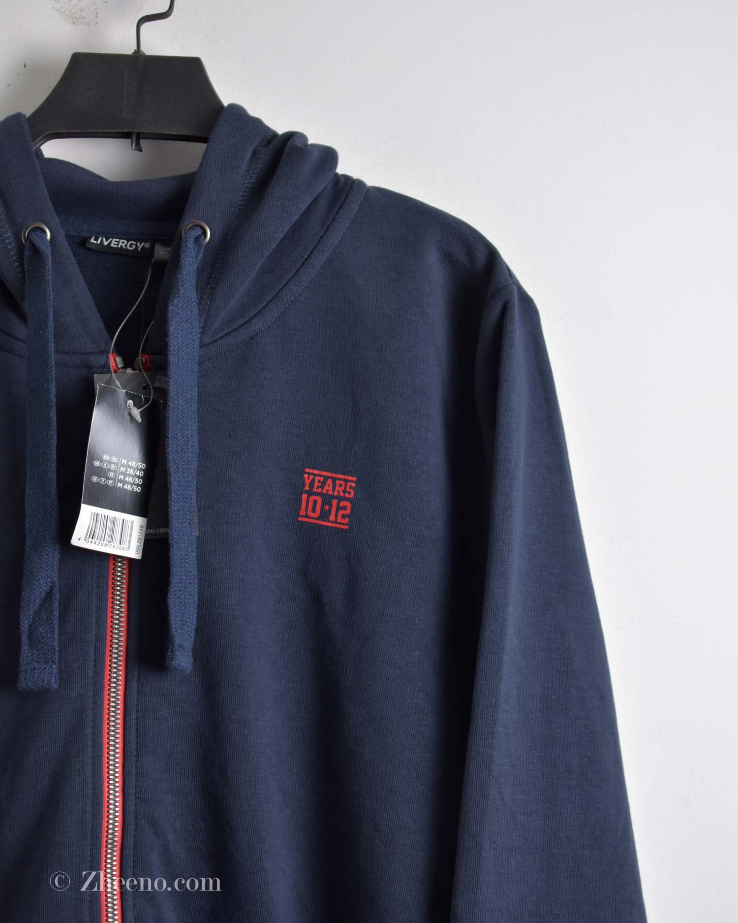 سویشرت کلاه دار سرمه ای زیپ قرمز Livergy