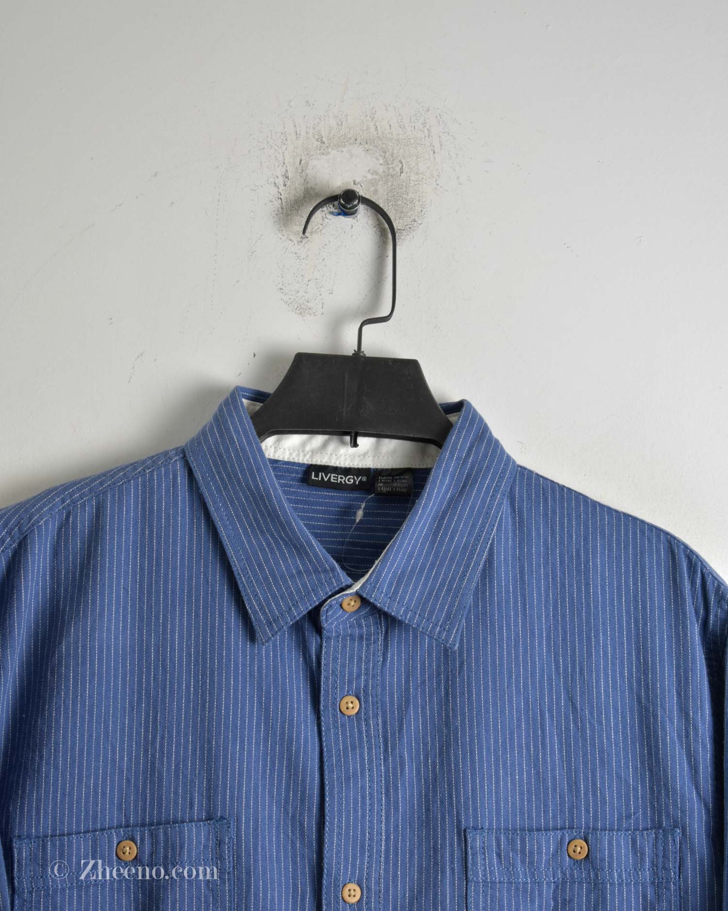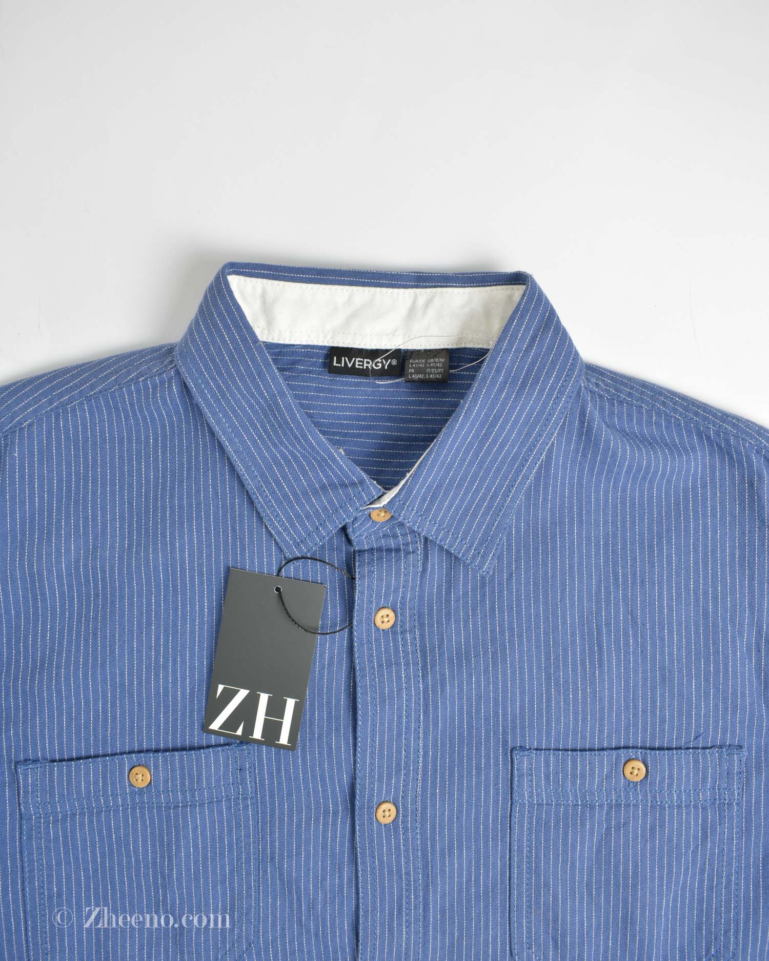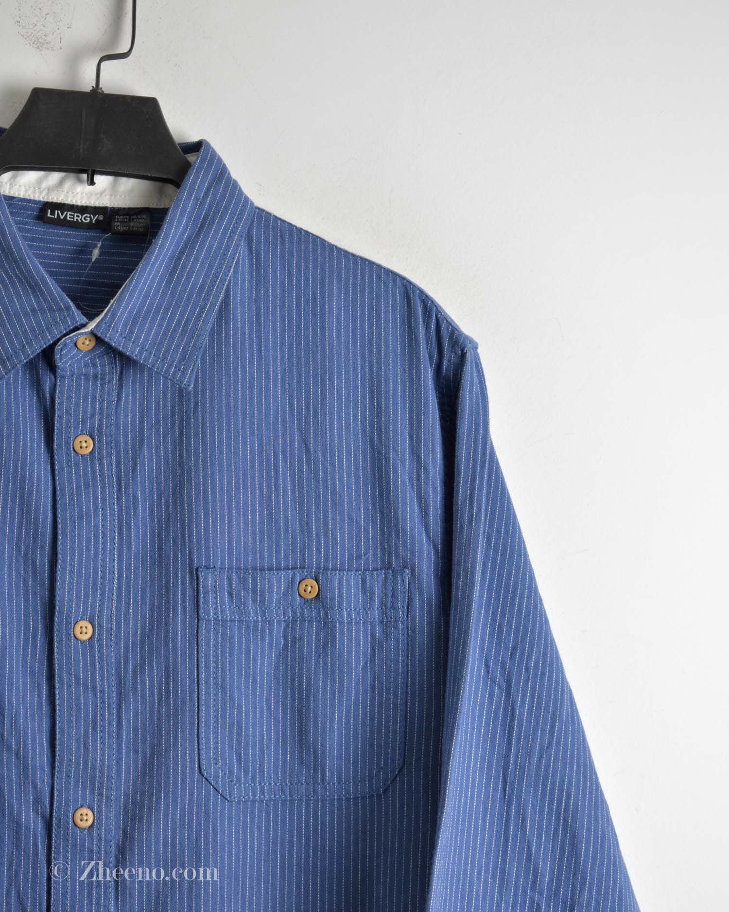 پیراهن نخی آستین بلند آبی خط دار Livergy