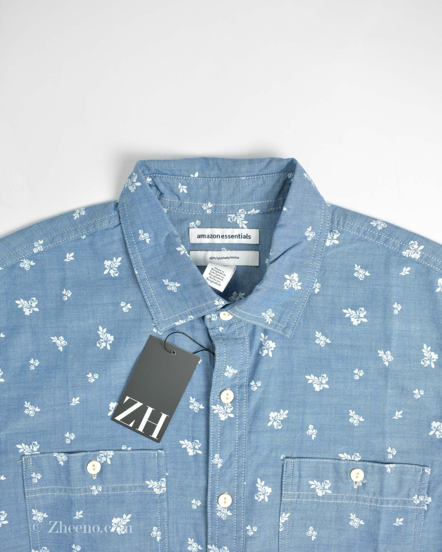 پیراهن نخی آستین کوتاه آبی Amazon Essential